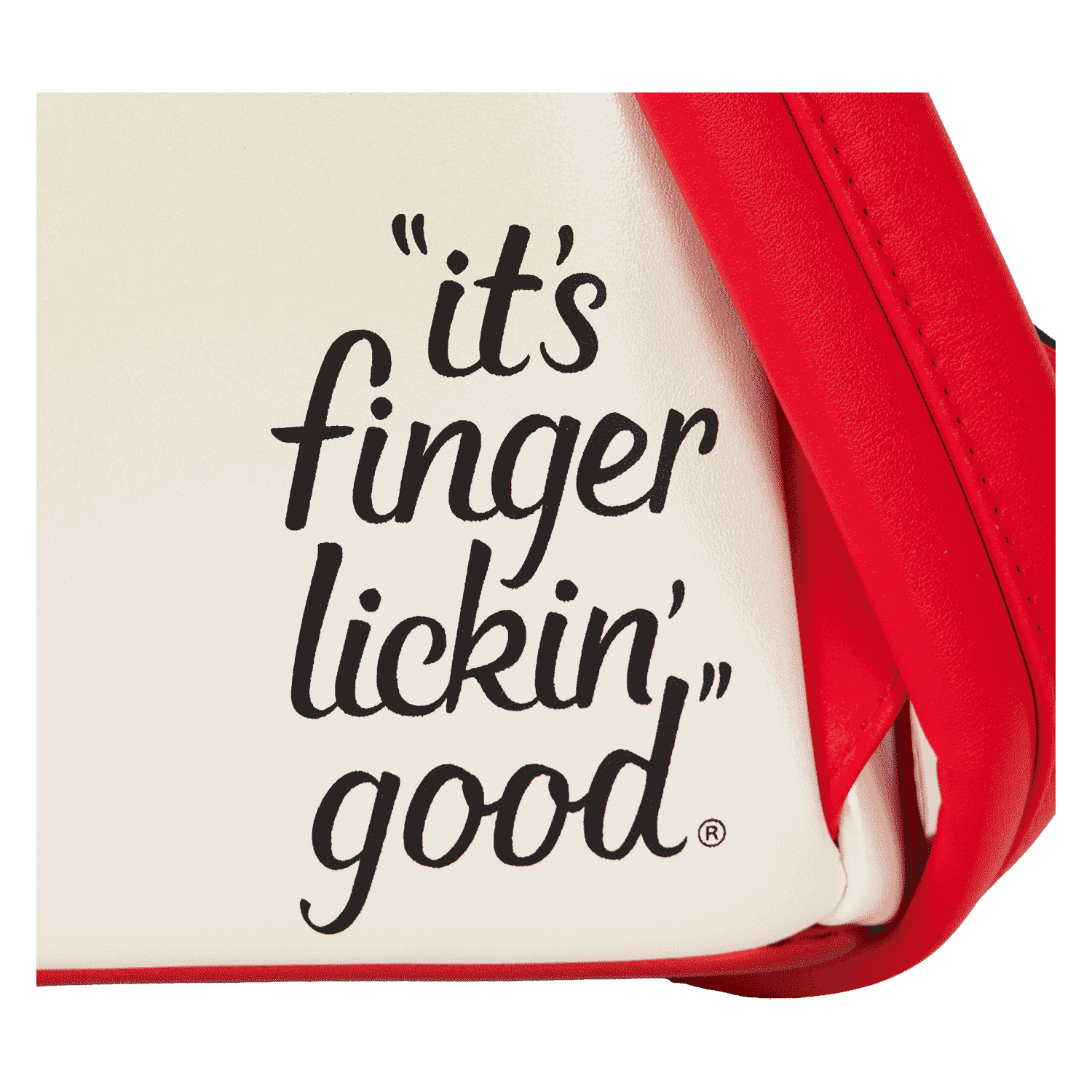 A deliciously stylish bag! This KFC mini backpack is truly iconic and ready to make a statement. The classic KFC bucket is portrayed on the bag in sherpa, embroidered, and pearlescent detail. You’ll find plush wings sitting within the front pocket “bucket.” Turn the bag around to find the tagline, “It’s finger lickin’ good” written on the back. Take your KFC love to next level – every KFC fan needs a statement bag like this!