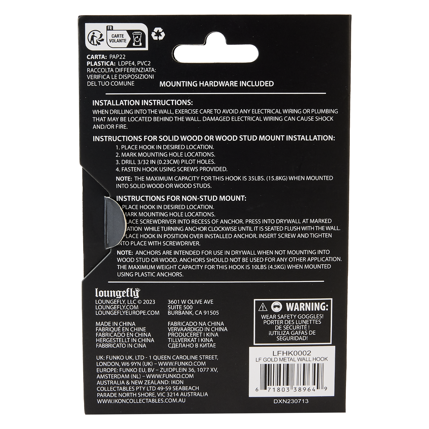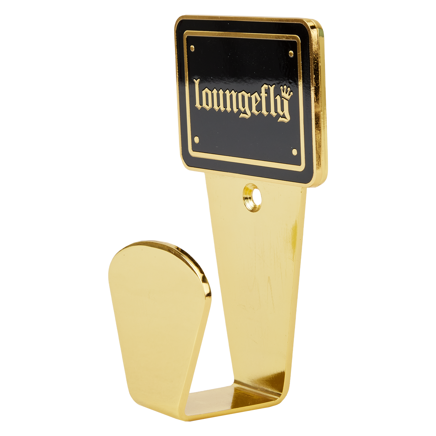 Give your favorite Loungefly bag a stylish lift with our Loungefly Gold Metal Wall Hook. This wall accessory features the signature Loungefly plaque and sturdy gold-colored metal backing and hook. It’s perfect for displaying and organizing Loungefly bags and apparel, effortlessly.