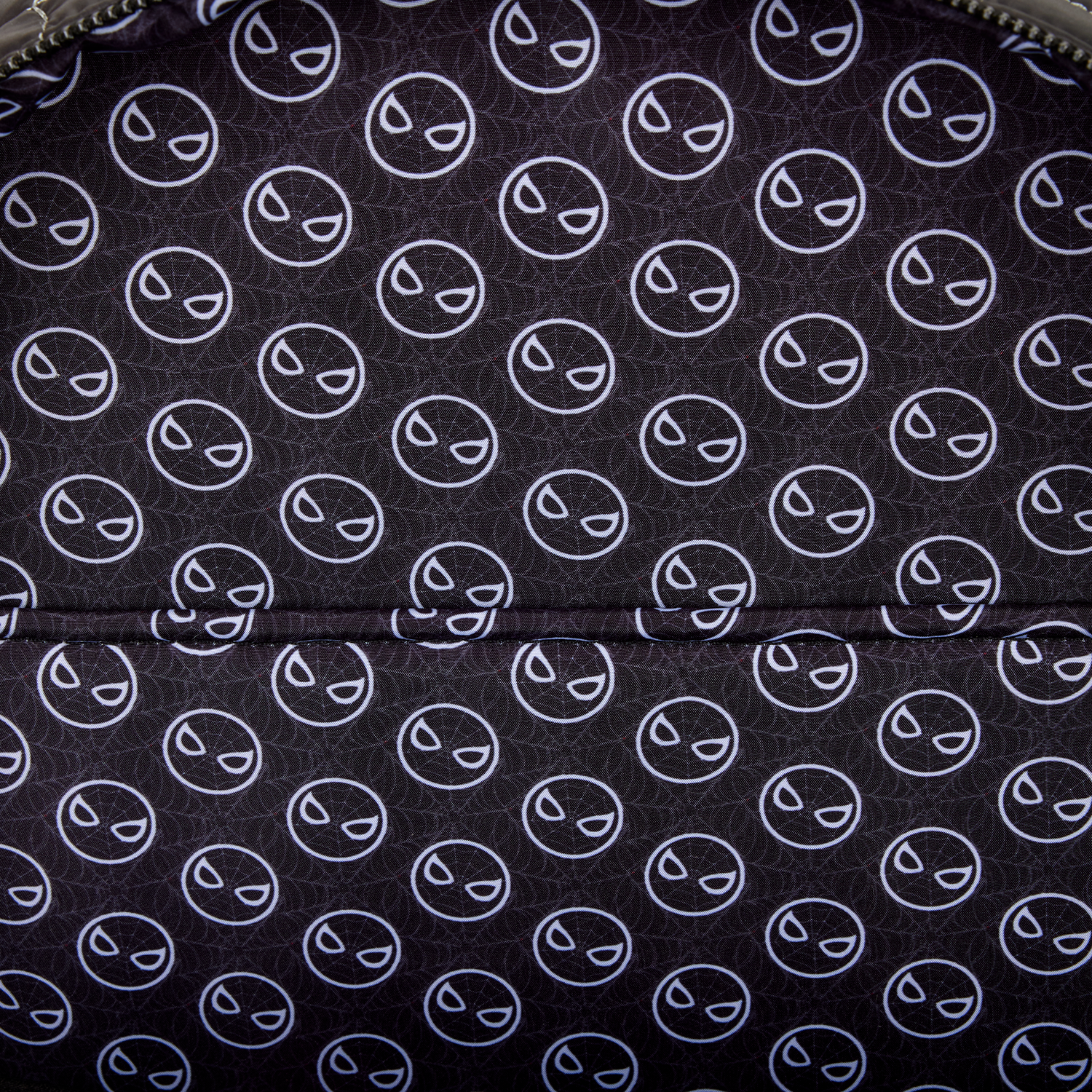 This backpack is full-size, so there’s plenty of space to carry everything you need. The design is inspired by Spider-Man’s black suit. You’ll find rubber details of his eyes and spider symbol. Puffed synthetic fiber, quilting, debossing, and embroidery makes this an upleveled style to carry with you.