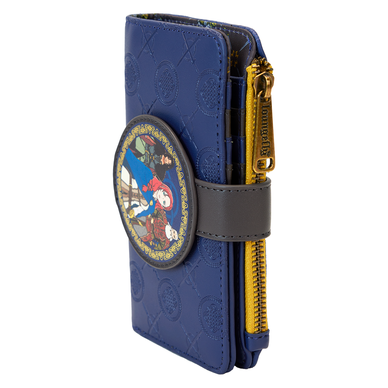 Arise and ride off to defend Rohan in style! Our The Lord of the Rings: The War of the Rohirrim bifold wallet is ready for adventures. An all-over debossed pattern of crossed swords and emblems, which blends in with the royal blue background, adds an elegant nod to the fandom. The front snap features a circular applique with a vivid print of fan-favorite characters, including Hèra, Wulf, and Helm Hammerhand. Flip the wallet around, and you’ll find the words, “You could rule the world.” Secure your valuables for a day-trip to Middle-Earth in the latest fashion.