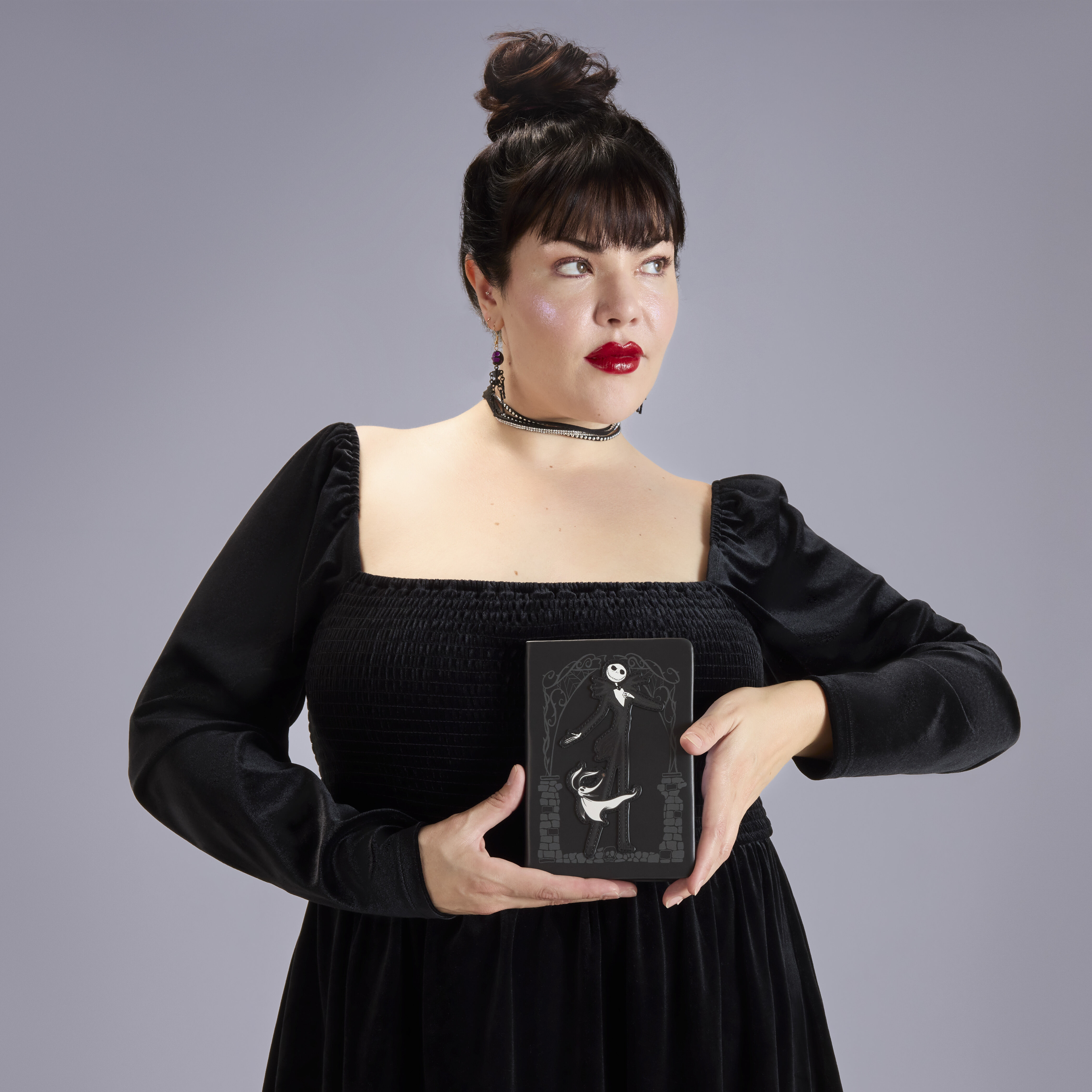 This notebook is inspired by Jack Skellington from Disney Tim Burton’s The Nightmare Before Christmas. On the front, you’ll find Jack with Zero. Turn it around to find “Pumpkin King” written on the back beneath some jack-o’-lanterns! Within, there are lined pages with images of Jack Skellington!